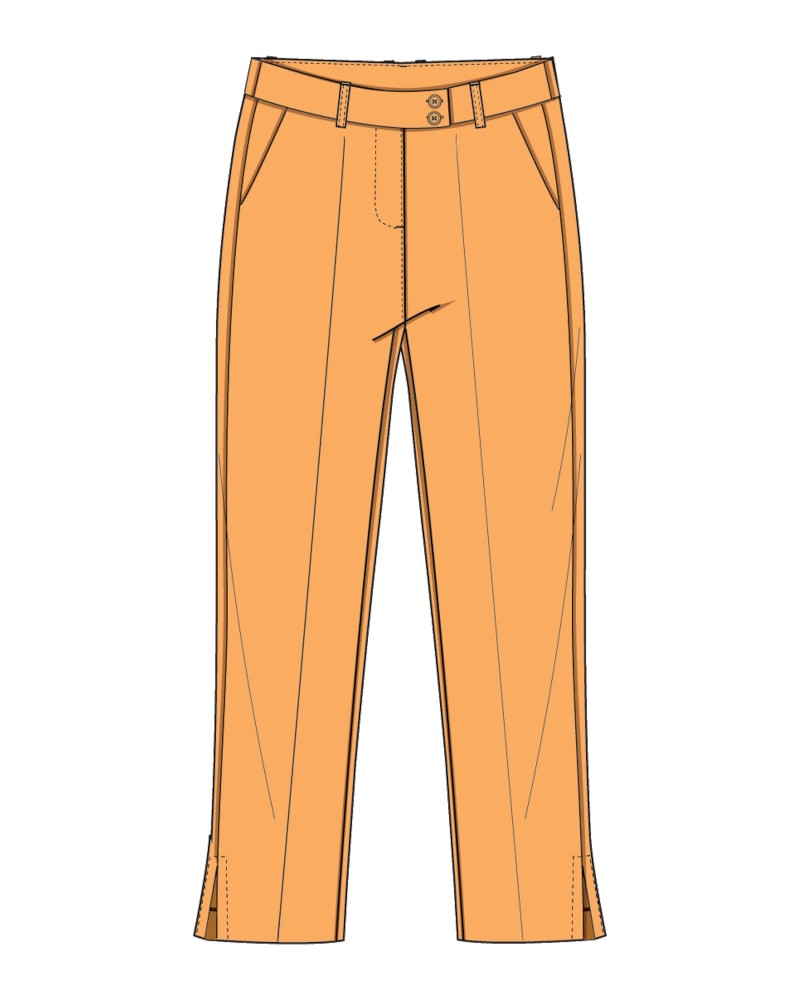 Dans l'esprit des pantalons cigarette aux influences fifties, CARACAS n'en finit pas de vous étonner : large ceinture à passants avec double boutonnage, poches en biais invisibles, pinces arrières pour bien s'appliquer à votre cambrure, et enfin raffinement des petites fentes sur les côtés.